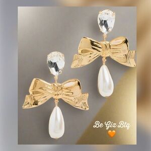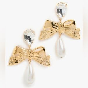 LELET NY Stella Pearl Earrings with gorgeous bow charms, adorned with crystals and imitation pearl detailing perfect for a wedding dress or a formal dress night. Adorned your hair to match with this gorgeous earrings that are a bold statement. ( Not included)