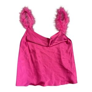 LELIS Fur Strap Cami Top in Fushia Size Small