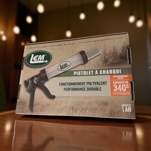 LEM Products 555 Jerky Gun is made to give years of performance. The heavy-duty drive system of the Jerky Gun handles ground meat like a charm. Load the barrel of the Jerky Gun with lean, seasoned ground meat and shoot out flat strips of jerky or round snack sticks. Barrel will hold 3/4 pounds of meat. Dry jerky in your oven in as little as 2 1/2 hours or use a dehydrator. Make delicious, tender jerky strips. Even denture wearers can enjoy this great meat snack. The Jerky Gun comes with a 1/2" round nozzle, a 1-3/16" x 3/16" flat nozzle and a package of Backwoods Jerky Seasoning for 4 pounds of meat. Complete instructions included.
