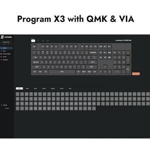LEMOKEY X3 full-size wired mechanical keyboard with 104 keys, red backlighting, and brown tactile switches. Features QMK/VIA programmability for custom keymaps, macros, and shortcuts. Works with Windows (may work on Mac with limited functionality).