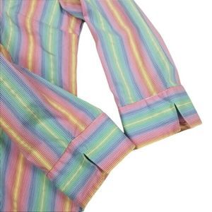 LEMON GRASS Womens S Rainbow Striped Career Stretch Button Front Shirt Open Cuff