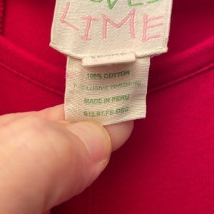 Lemon Loves Lime sz14 red ruffle a-line tank dress. Dress is in excellent condition with little to no signs of wear. Such a nice dress, that is soft and comfortable, and good for both casual or dressier occasions. Dress has a nice weight to it, so it can be worn year round when layered in colder weather. Dress has a scalloped hem with layers of ruffles. The dress has fully finished seams on the inside, and has a flat layer under the ruffles. Dress is darted in front and back giving it that extra detail. Laying flat the dress measures approximately 13.5” across the chest and approximately 35” in length from shoulder to hem.