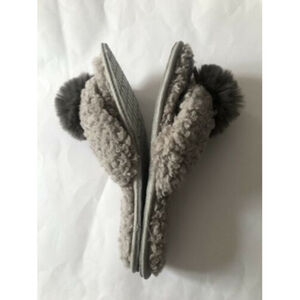 LEMON Women's Cozy Flip Flop Slippers Pom Faux Fur Sherpa