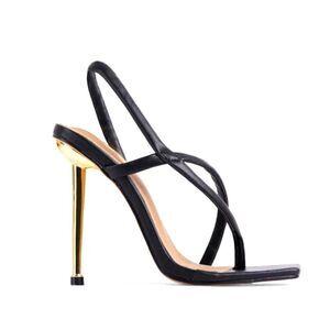 LEMONADE CADILLAC CROSS STRAP SQUARE TOE METALLIC HEEL MULE SANDALS