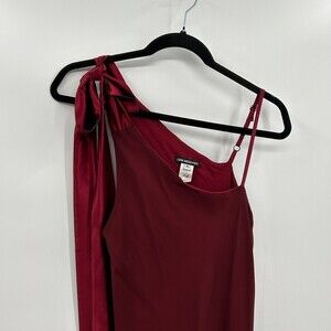 LENA MEDOYEFF Red 100% Silk Bow Shoulder Spaghetti Strap Maxi Gown Dress Small