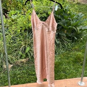 LENA MEDOYEFF SILK PINK MIDI DRESS OR SLIP XS