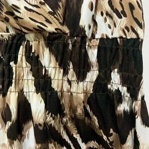 This soft, beautiful, animal print maxi can be dressed up or down. Unique beaded design on straps. Perfect for vaction, date night, or everyday wear. There is a small thread missing in the elastic waistline as shown in picture. Super soft material size med.