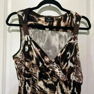LENNIE BY NINA LEONARD FLOWY ANIMAL PRINT MAXI DRESS SIZE M