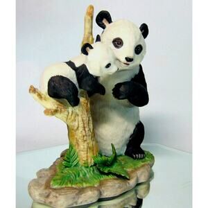 LENOX 1993 Porcelain Giant MOTHER PANDA BEAR & BABY CUB Tree FIGURINE Bears