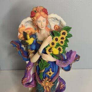 Gorgeous Angel of Glory 2002 Jennifer. Beautifully hand-painted with sunflowers and yellow birds. Very detailed. Crafted with bonded porcelain and painted entirely by hand. No chips or flaws. This has only been taking out of the box a couple times one for the pictures. Retired limited edition. EXCELLENT CONDITION