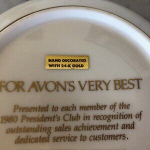 For Avon's Very Best: Presented to each member of the 1980 President's Club in recognition of outstanding sales achievement and dedicated service to customers. Created in fine china by Lenox exclusively for Avon.