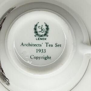 The Architect's Tea Service was conceived by New York's Women's Division of the Architects' Emergency Committee, comprised mostly of NY's elite, during the depression to raise money for suffering architects. 5,000 sets were manufactured by Lenox in 1933, each piece depicting America's historic architecture.