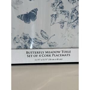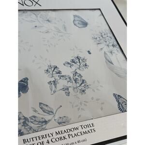 LENOX Butterfly Meadow Blue Toile Floral Cork Placemats Set Of 4 NEW