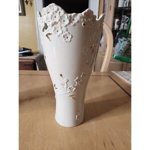 LENOX CHERRY BLOSSOM EMBOSSED RETICULATED FLOWERS VASE 9 1/2 Inches