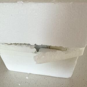 I pulled the battery tab to check it. Those batteries that it came with were dead. I tested with my own batteries and it works. However, batteries not included. It takes 3 AAA. Never used other than me testing it out. I’m sorry but the box is gone. But it has styrofoam to protect it.