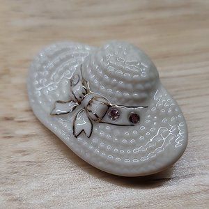 LENOX Ivory Fine China Handcrafted Bonnet Gold Trim Brooch Pin ***HAT ONLY***