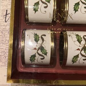 LENOX NIP Set of 4 Dinner Napkin Rings Gold Tone White Green Red Christmas