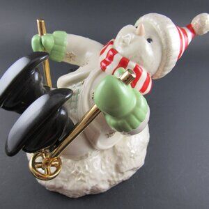 LENOX PORCELAIN SKIING CUTE SNOWMAN LARGE FIGURINE
