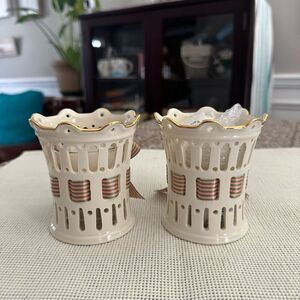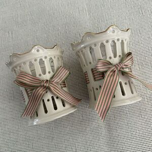 Lenox, Pierced Votive Candle Holders, Ribbon, Set of 2, Embossed, Giftware, Candles Included