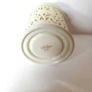 This Lenox tea light holder is in perfect condition with no chips or cracks. The gold trim is all intact. The tea light when lit flickers a beautiful design. It measures 3.5" tall x 2.5" across. Add to your Lenox collection today!