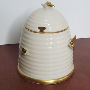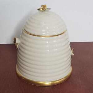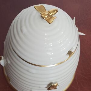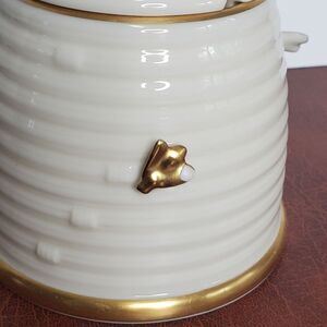 Lenox, China, Cream, Ivory, Gilded Bee Hive, Gold Accents, Sugar, Honey, Jar, Pot, porcelain, 24k gold plated, rare, bees, hive, pooh, hunny, collectibles, decor, display items, decoration, kitchen, functional, vintage, vtg, retro, art, artist, gifts for her, gifts for mom.