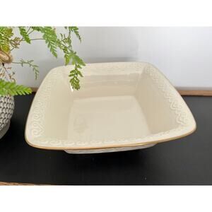 LENOX: Vintage Persian Square 9" Bowl Footed with Gold Trim and Embossed Scrolls