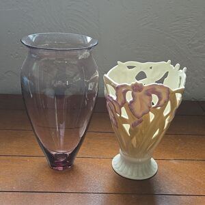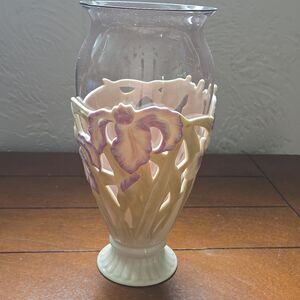 LENOX CLASSIC PIERCED IRIS VASE, Purple and Cream Floral pattern - NEW WITH TAGS