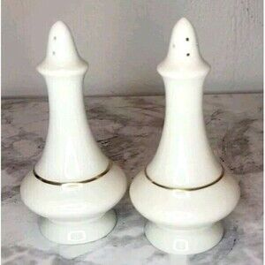 LENOX MODERN GOLD TRIM IVORY BUD VASE & Salt/Pepper Shakers Lot