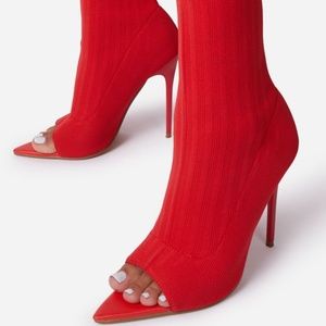 Girl, add a touch of fierce to your going out look. Featuring a red knitted material, with a pointed toe in a sock boot design.