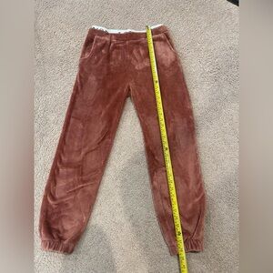 LEO ROSI Plush Lounge Fleece Jogger Pants, size LARGE, in brown color, elastc waistband with letter graphic design, with 2 side pockets, polyester blend material, very soft and cozy. Preloved, signs of usage, in excellent condition.