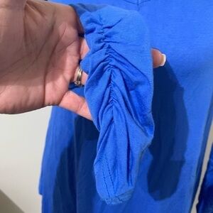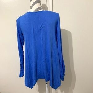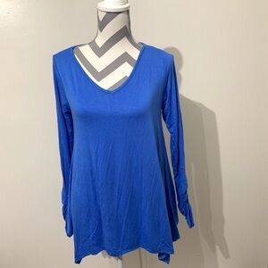 Made of soft and comfortable materials, this flowy tunic top pairs great with jeans and boots for a casual look Size: Small. Color: Blue. Gender: Female. Age Group: Adult.