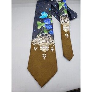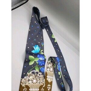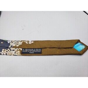LEONARD Paris Dessin 67864 Silk Neck Tie Italy Made Floral Polka Dots Blue Brown