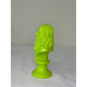 Made in Italy pop art, street art statue bust of Leonardo da Vinci in polyresin neon green. Stands 3x2