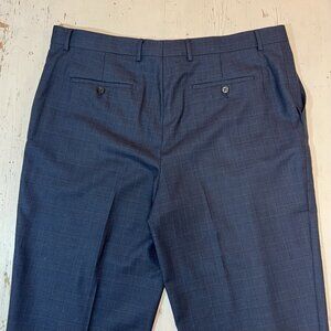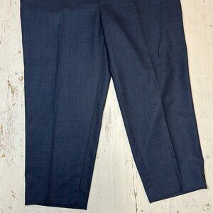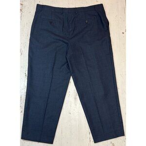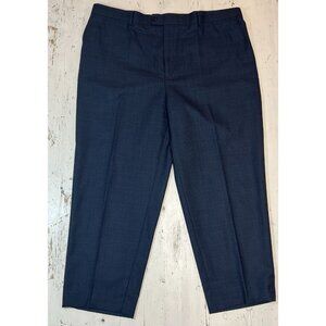 LEONARDO VALENTI Mens Pants Flat Front Navy Black Plaid 110% Wool Soft 46W READ*