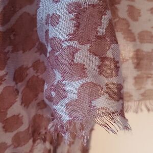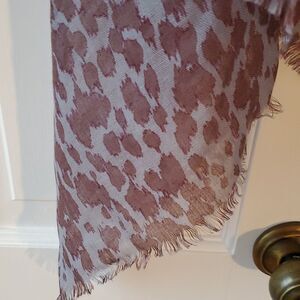 LEOPARD ANIMAL PRINT BLUE BROWN SCARF WRAP FALL SHEER FRINGE 29" by 70"