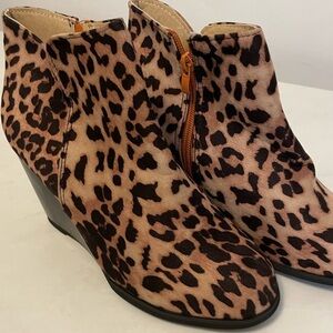 LEOPARD Ankle Boots with Orange Zipper Wedge