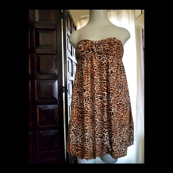 STRAPLESS LEOPARD PRINT DRESS
