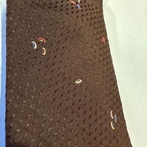 LEOPOLD PRICE & ROLLE HOUSTON MADE EXPRESSLY BY X'ANDRINI BROWN TIE WITH 'BEANS' BLUE, RED, TAN VINTAGE RARE 100% SILK FROM ITALY