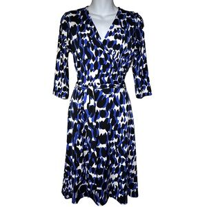 LEOTA | NWT Perfect Wrap Painted Leopard Cobalt 3/4 Sleeve Midi Dress