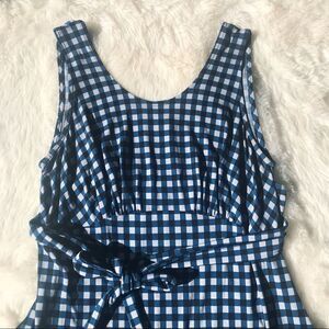 LEOTA Sleeveless Maternity Midi Dress Plaid Knit Tie Waist Blue Gray Small