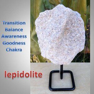 ❤️ LEPIDOLITE stone rock crystal on stand CHAKRA : balance awareness 03