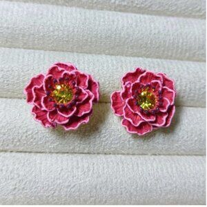 Stud Earrings: Gold-plated brass, hand-enameled and faceted crystal