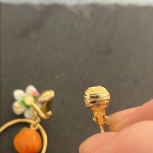 Charming floral earrings with peach and gold accents. Perfect for adding a touch of elegance to any outfit.