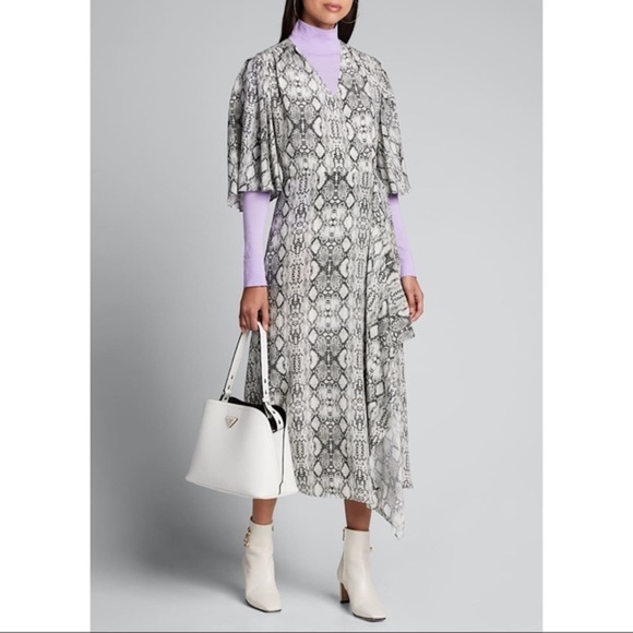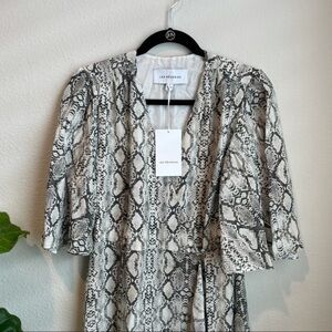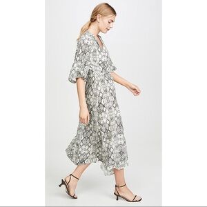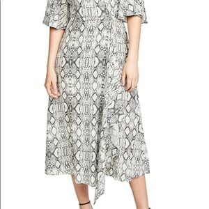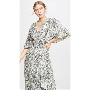 LES REVERIES Womens Flutter Sleeve Snake Print Long Wrap Dress White Size 2