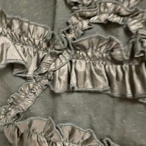 COTTON BLACK KNEE-LENGTH SKIRT WITH SEWN LINING AND TRIM SATIN RIBON ON THE FRONT