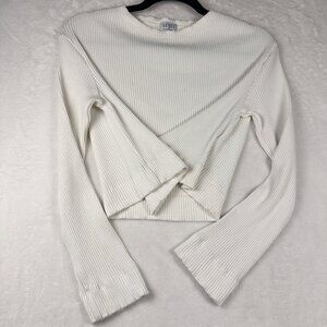 LESET Women's Ali Ribbed-knit Cropped Top In Ivory size XS Soft Stretch Luxe Top