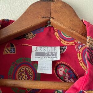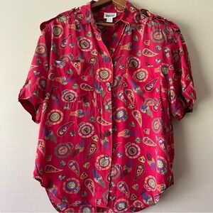 LESLIE FAY 80s 90s Paisley Women's Short Sleeve Button up with Shoulder Pads