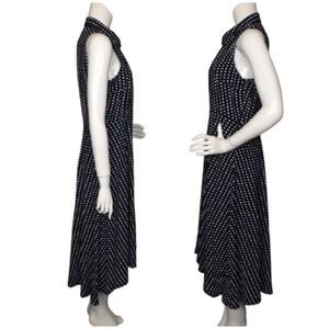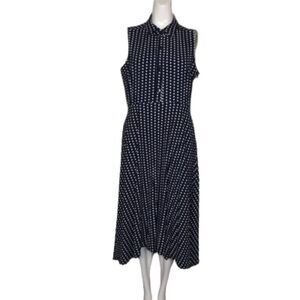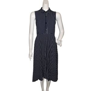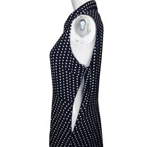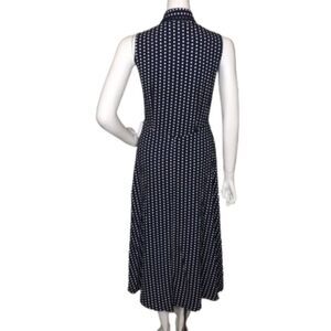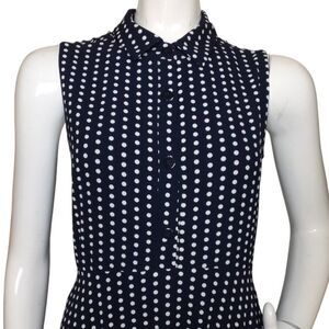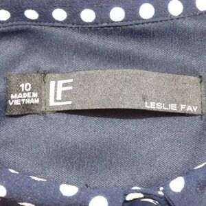 LESLIE FAY Dress, 10, Navy/White Polka Dots, Sleeveless/Collar, Side Zip