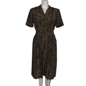 LESLIE FAY Dress, 6P Petite, Career wear, Belt, Black, Crosshatch/Lines