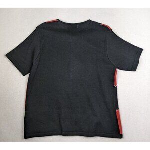 LESLIE FAY HABERDASHERY WOMEN'S BLACK & ORANGE SHORT SLEEVE FULL ZIP CARDIGAN M